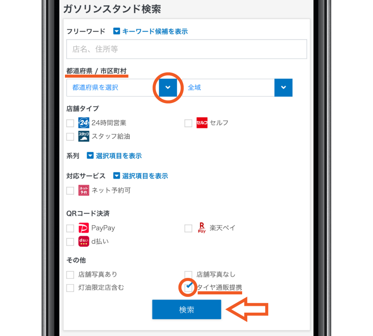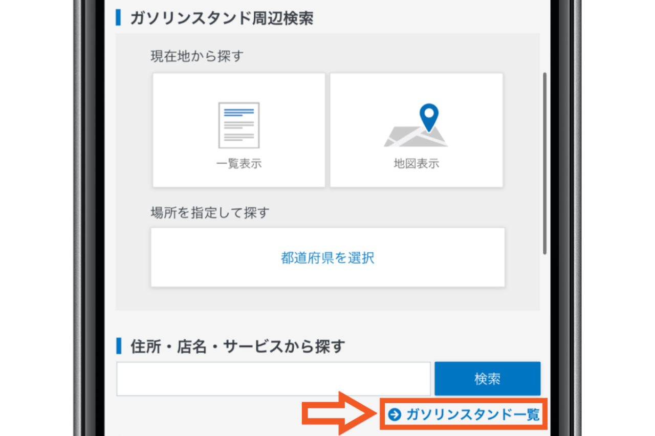 提携店舗の探し方は、[ガソリンスタンド検索]をご利用ください。
