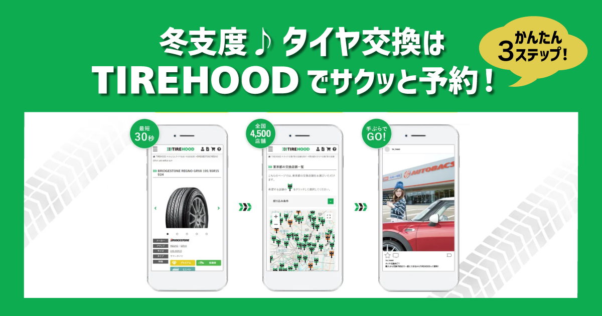 「タイヤ購入」と「タイヤ交換予約」を一度にできるネットサービス TIREHOOD。