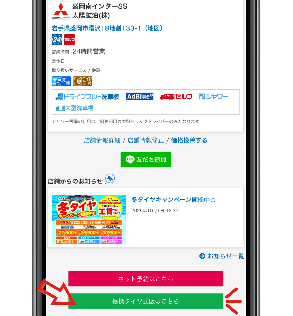 ※盛岡南インターSS / 太陽鉱油(株)作業をお願いしたいSSが決まったら、提携タイヤ通販はこちら をクリック!